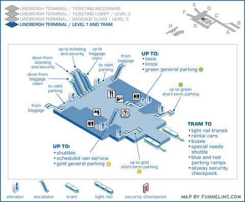 Our first task was to create 39 separate maps for travelers using their website. Using research based on field observations and staff interviews, all of the concourses, terminals, parking options and task-based maps were visualized from the most appropriate vantage point.